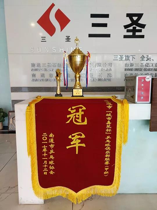 在二〇一七年南通市“城市嘉苑杯”乒乓球俱樂(lè )部聯(lián)賽甲組比賽中,三圣江淮乒乓球俱樂(lè )部,不懼強手,敢打敢拼,再次榮獲冠軍。